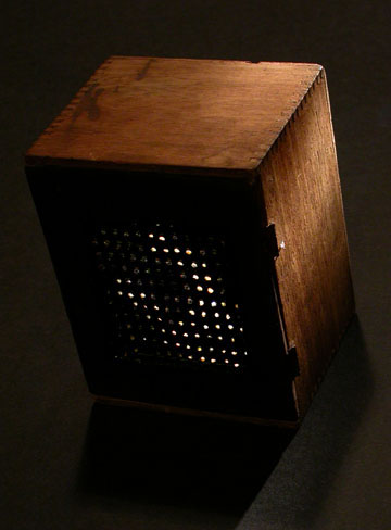 materials: light pipes, copper leaf, solar mechanism, wooden box