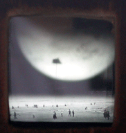 materials: optics, photomontage of found glass plates, thread, copper, wooden box
